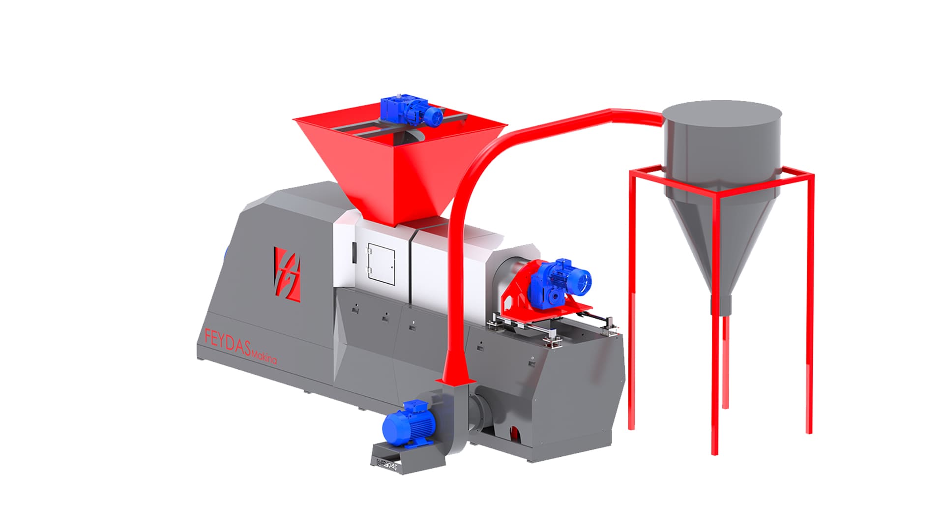 The humidity of the material coming out of the drying-squeezing is less than 3%. Operates automatically, saves manpower cost & electricity cost by 30%. Squeezed and dried material is sent directly to extruder to become granules. Operating 365 days / 24 hours, it increases the capacity, reduces maintenance cost. The feeded recycled materials are squeezed to become flakes or lumps. After being squeezed, these lumps or flakes with much lower moisture and higher density can be directly fed into pelletizing extruder. 1 Feydaş' single screw squeezer saves cost, energy and time. It helps to protect environment and increase productivity as well as efficiency.