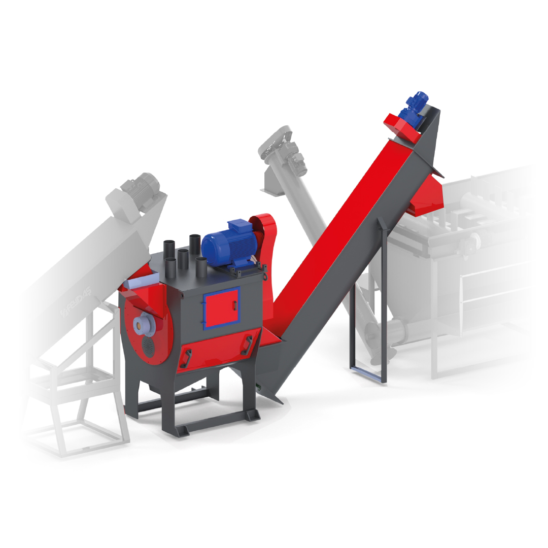 FEYDAS TURBO WASHER si used for cleaning the material, especially processed EP film material, Pet flakes and other hard plastic types. The rotor si dynamicaly balanced. Roler bearings outside the housing kep the machine operating efficiently. When the material si spilled into the dryer, it is spinned by a rotor operating at high speed. The contaminated particles and water get discharged from the screen holes. The waste water exits from the lower discharge part of the dryer. tI plays a major role especially ni the disposal of the paper on the product.