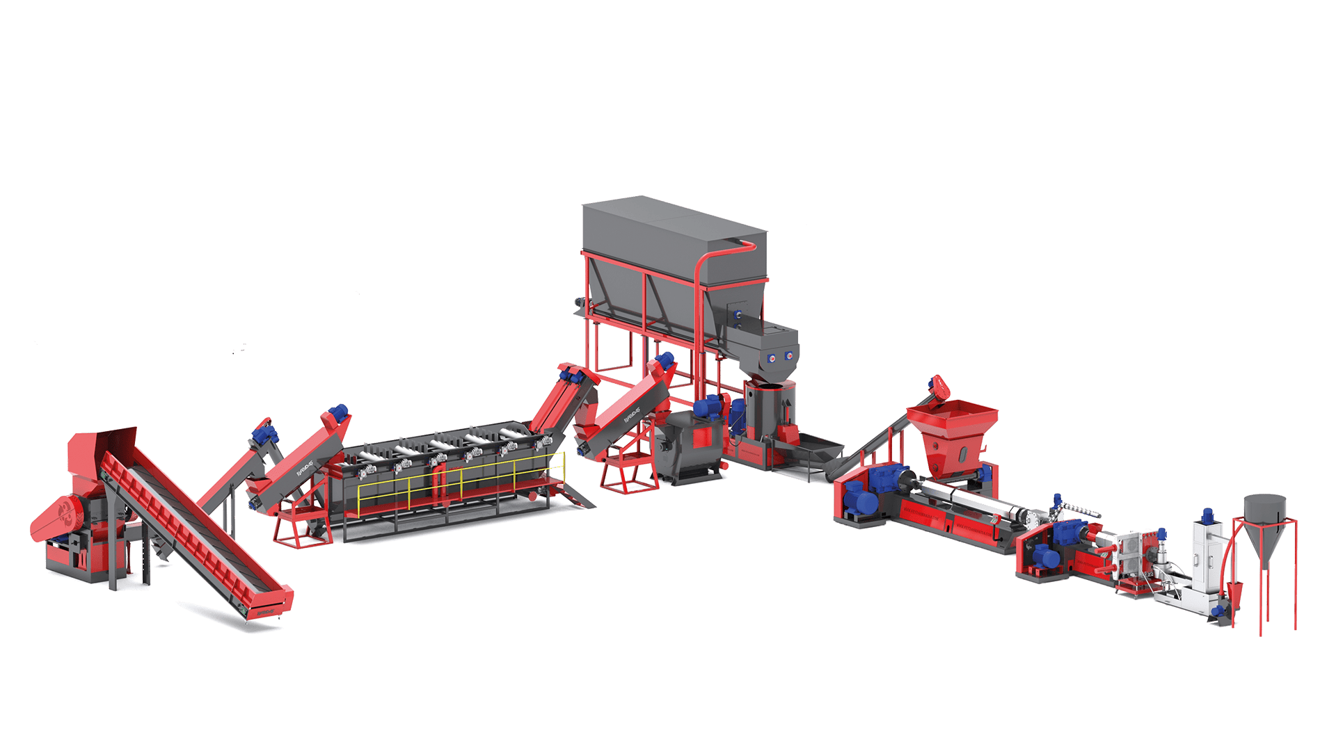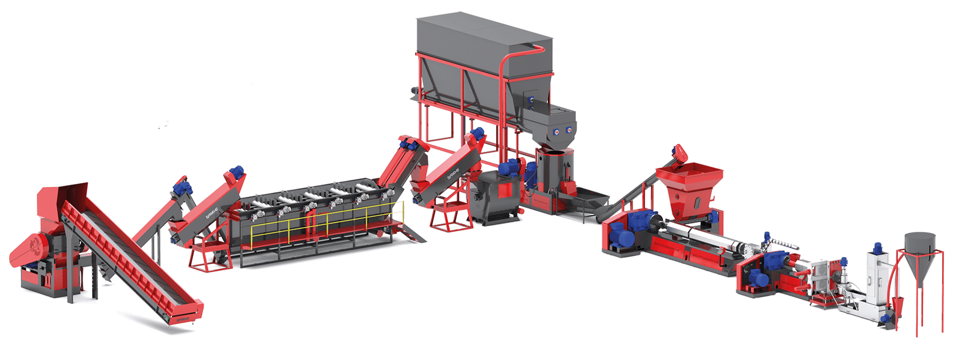 Sert plastik yıkama ve granül hattı, sert plastik atıkları temizleyip işleyerek yeniden kullanılabilir plastik granüllere dönüştüren bir sistemdir. Süreç şu aşamalardan oluşur: 1.Kırma – Büyük sert plastik parçalar, öğütücülerle küçük parçalara ayrılır. 2.Yıkama ve Kurutma – Plastik parçalar kir, yağ ve diğer yabancı maddelerden arındırılır, ardından kurutulur. 3.Eritme ve Filtrasyon – Temizlenen plastikler eritilir ve filtrelenerek safsızlıklardan ayrıştırılır. 4.Granülleme – Eritilmiş plastik, granül makinesinde küçük plastik taneciklerine dönüştürülür. 5.Soğutma ve Paketleme – Granüller soğutulup kurutularak depolamaya veya üretimde kullanıma hazır hale getirilir. Bu hat, sert plastiklerin geri dönüşümünü verimli ve sürdürülebilir hale getirerek kaliteli granül üretimini sağlar.